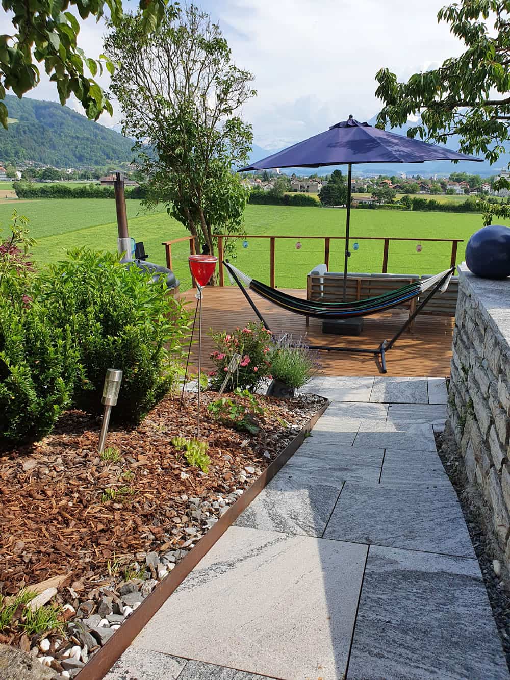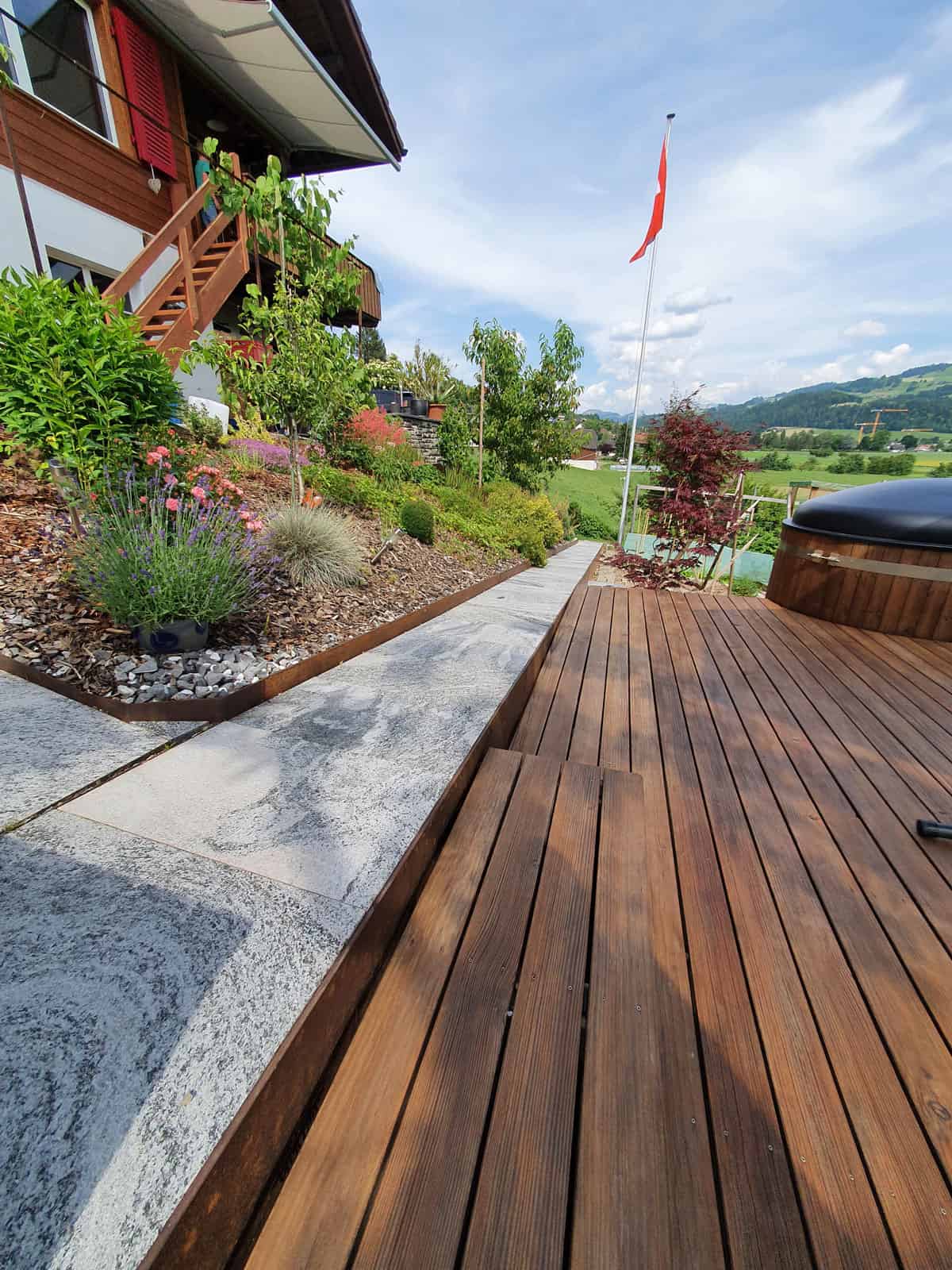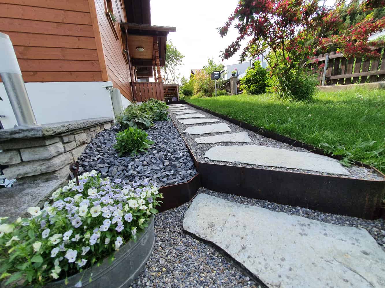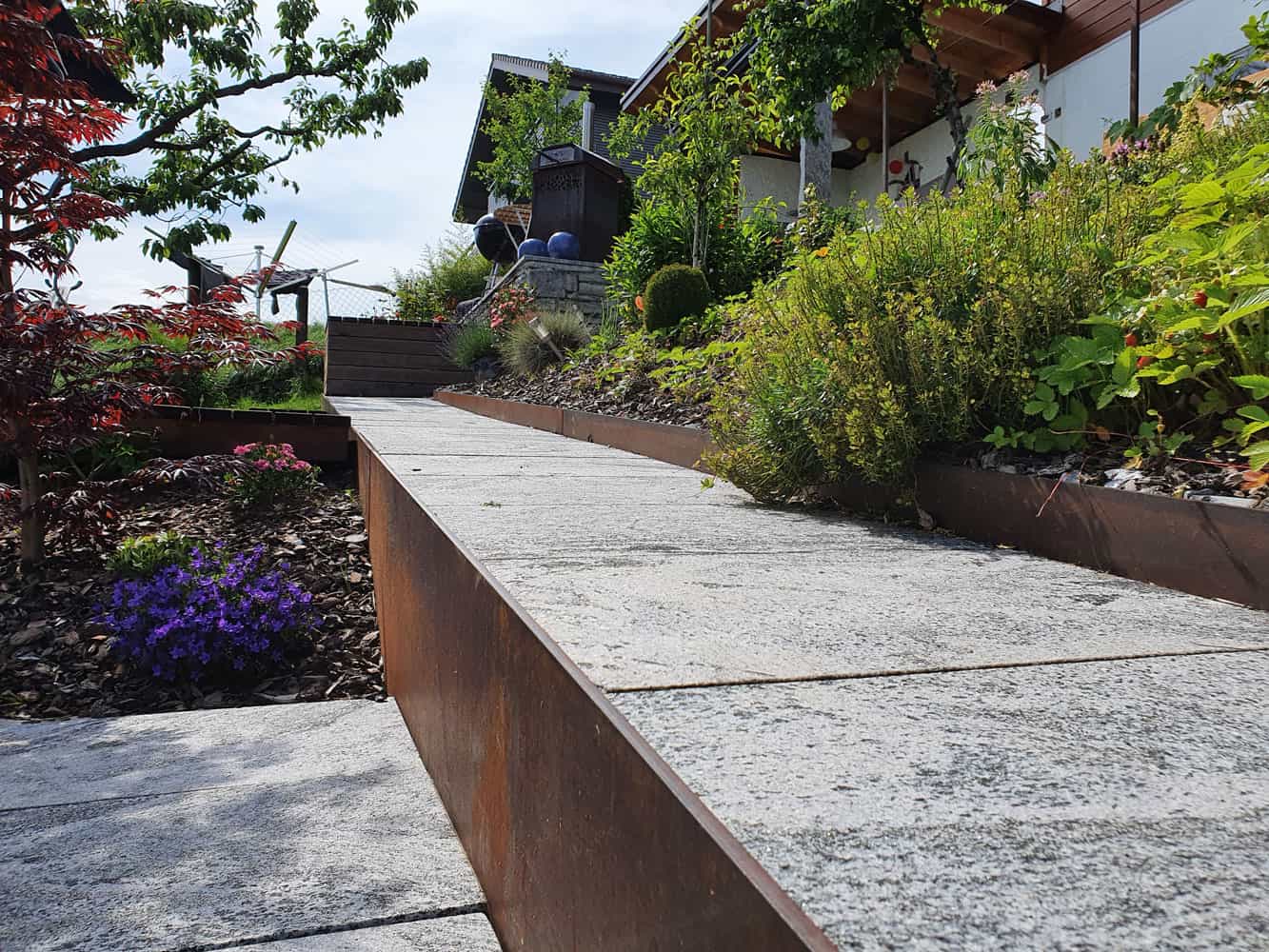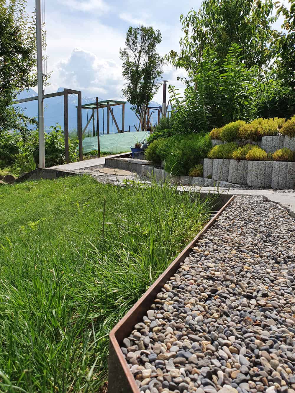 Auf Kundenwunsch angefertigte Gartengestaltung. Vor Ort passgenau zugeschnitten und verschweisst.