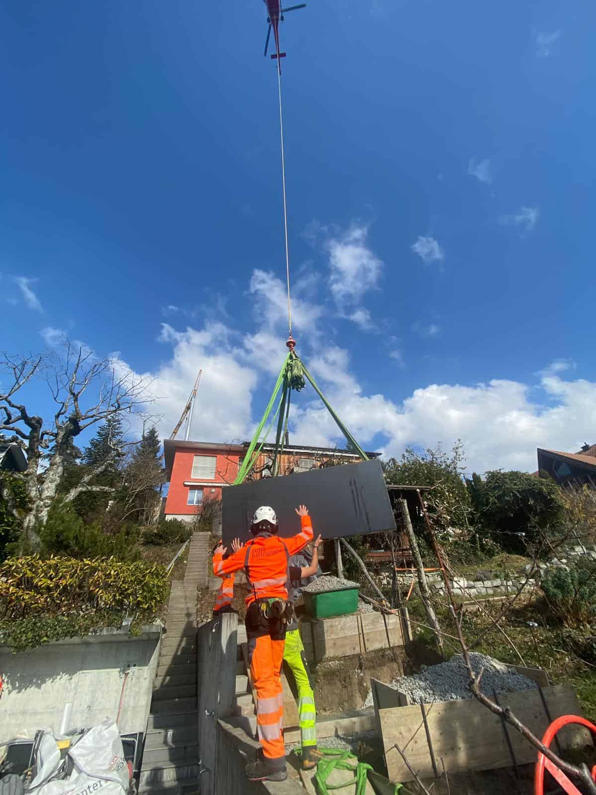 Duch gezielte konstruktive Massnahmen können unsere Elemente auch per Helicopter transportiert werden.
